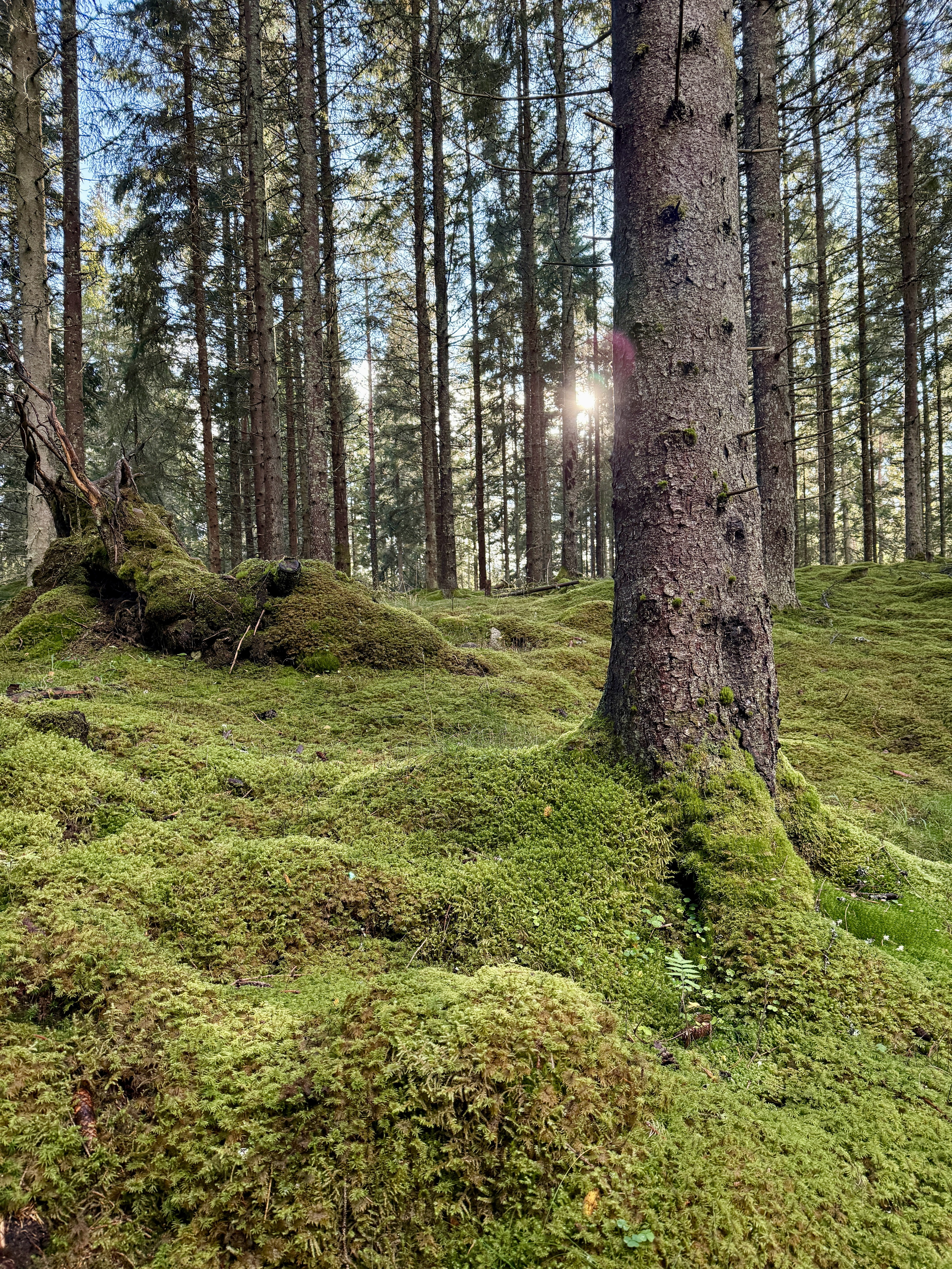 Efter att ha svängt in på en liten grusväg i ett öppet landskap leder vägen djupt in i skogen. Vid v…