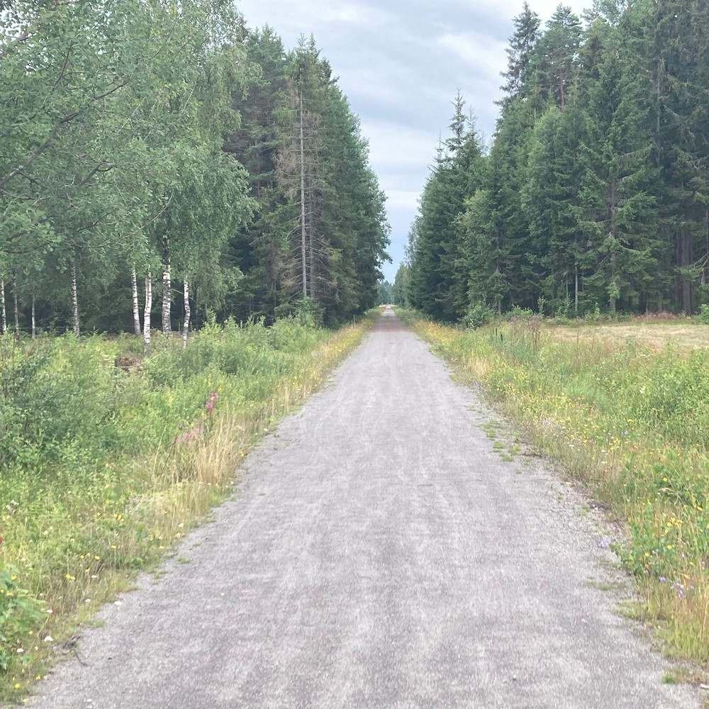 Mellan kommungränsen Värnamo-Ljungby och samhället Lagan finns i nuläget ingen skyltning, men följ bara banvallen, så håller du dig på leden.