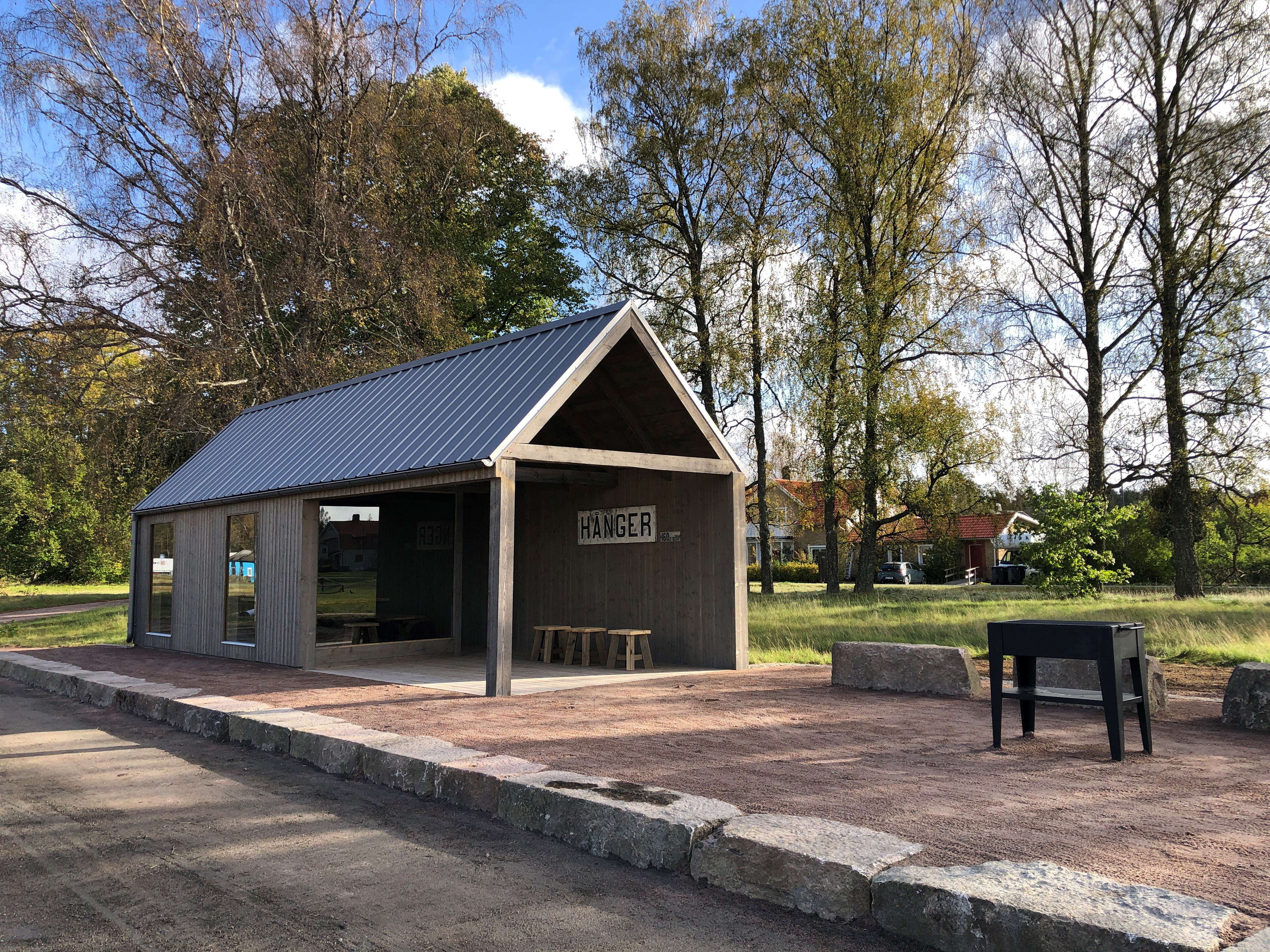 Ett stort och unikt utformat vindskydd i Åminne, kallat Himlahuset. Här finns en grillplats, pumptra…