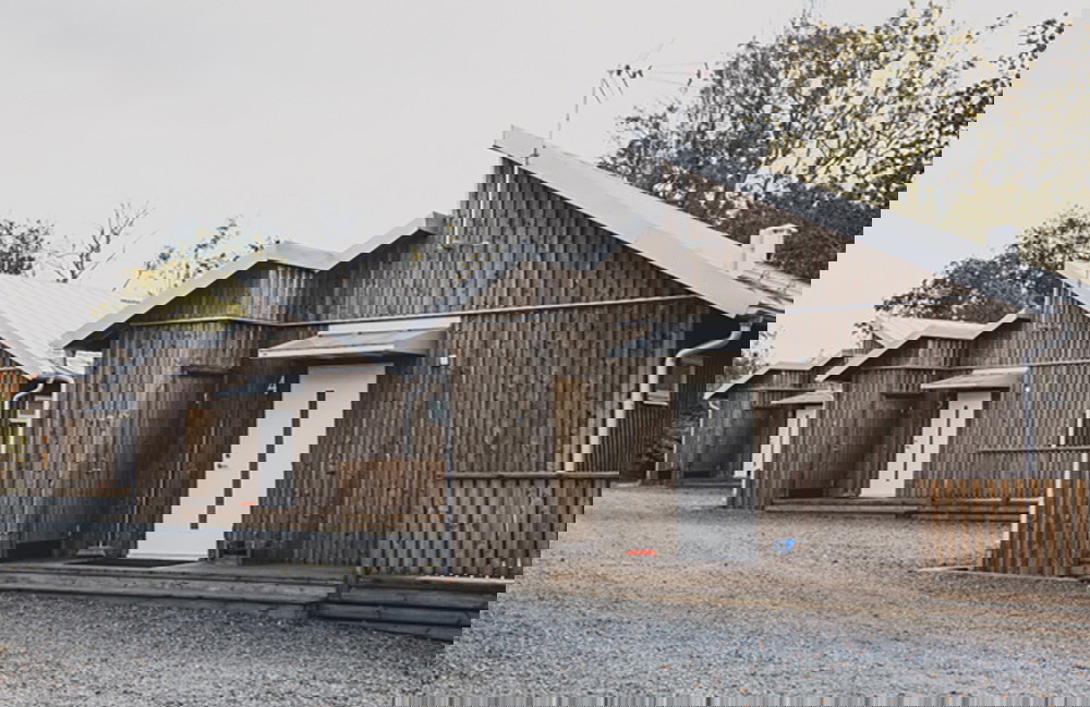 Mysig timmerstuga med grillplats som ligger något avsides utmed 3-km-spåret i Lövhult.…