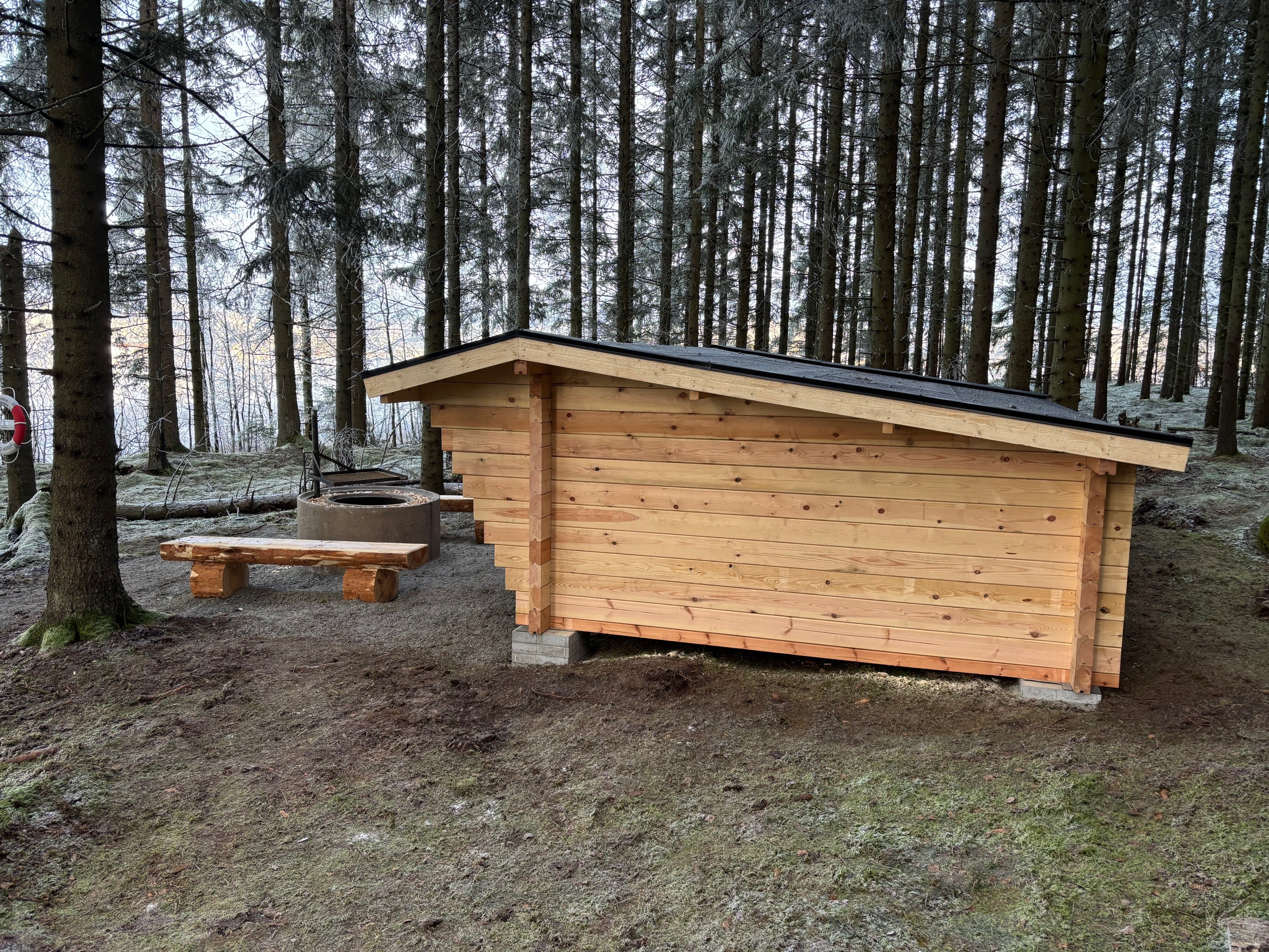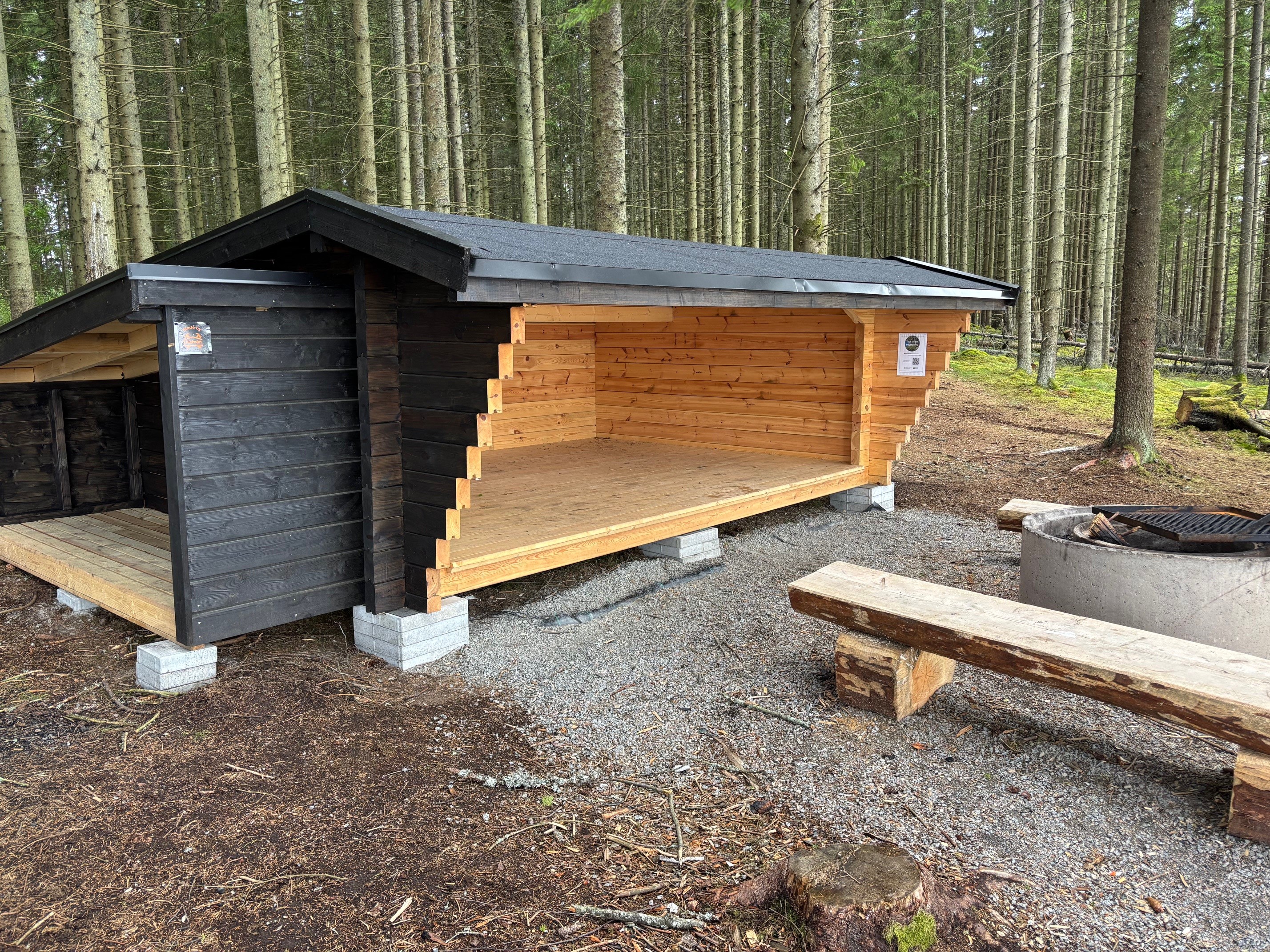 Vindskydd med plats för sex personer. Intilliggande grillplats och möjlighet till både bad och fiske.